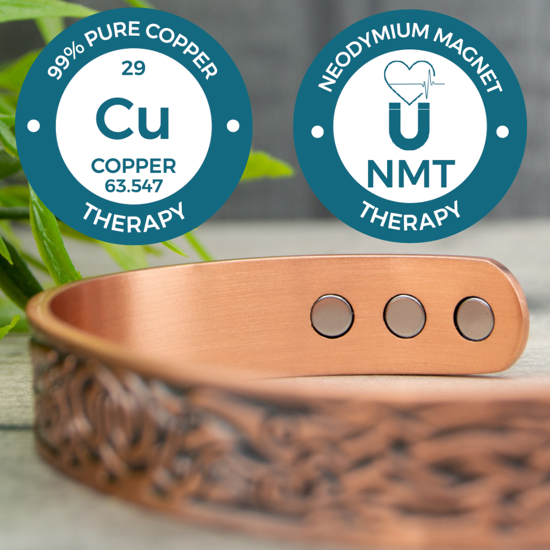 Our copper bracelets contain 99.9% pure copper and 3000 gauss Neodymium Magnet therapy.