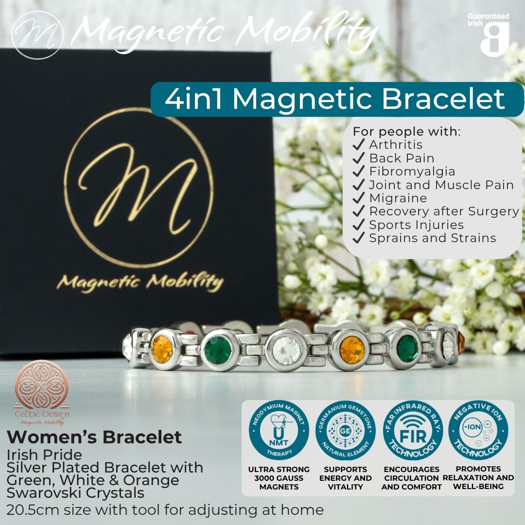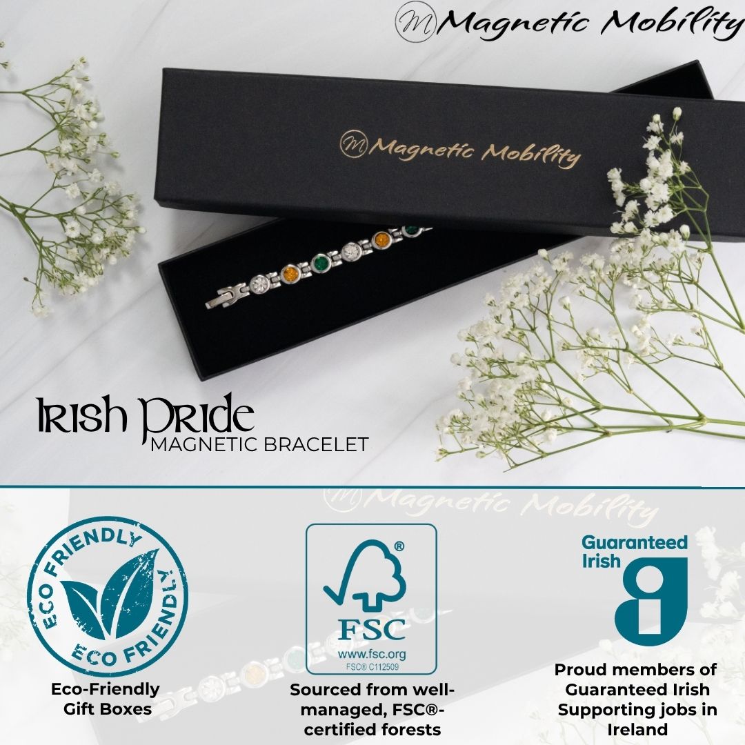 Experience the strength and unity of Ireland with our Irish Pride 4in1 Magnetic Bracelet from the Celtic Collection. This bracelet features the iconic Irish flag colors of green, white, and orange, representing Ireland's rich heritage and traditions. The added benefit of magnetic therapy promotes overall wellness, making this bracelet a true symbol of Irish pride.